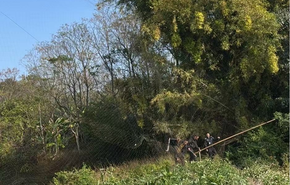 ▲工作人员在旺塘林村拆除非法捕鸟网