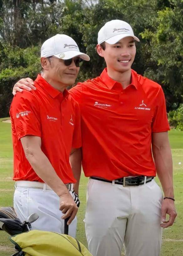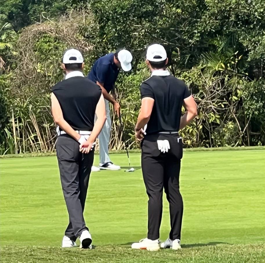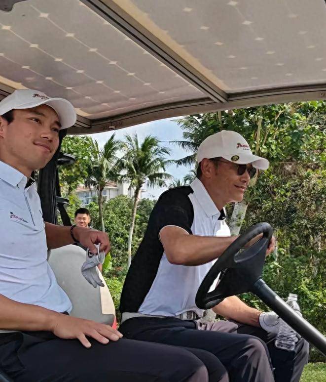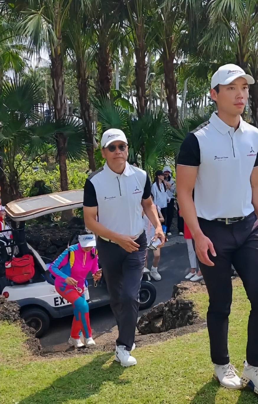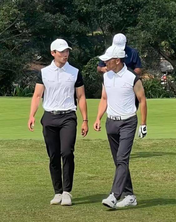 有网友在海南海口观澜湖的高尔夫球场上游玩时,恰好目睹苗侨伟带着儿子苗俊现身一场业余配对赛。父子俩一登场,便令现场网友惊艳不已。