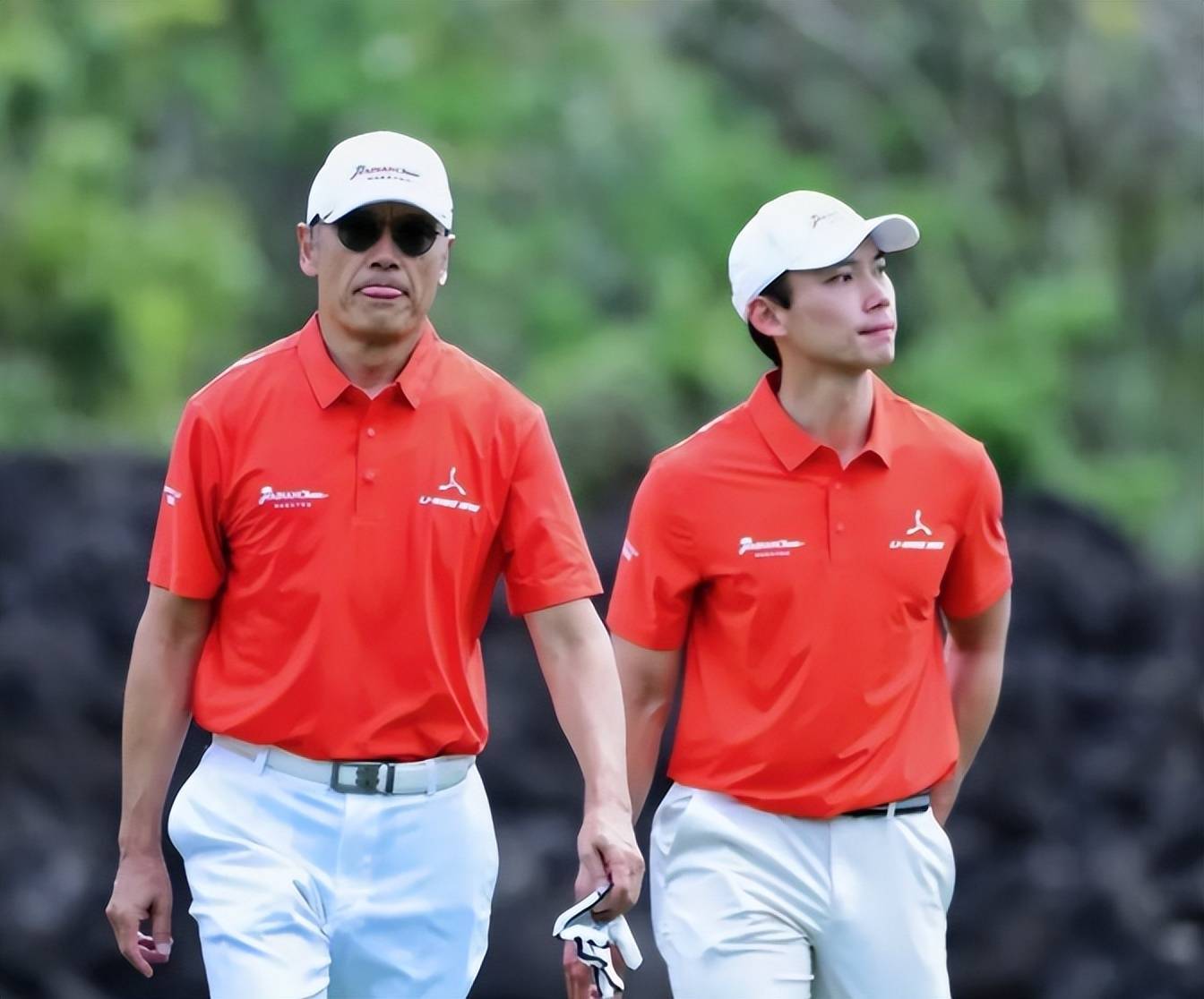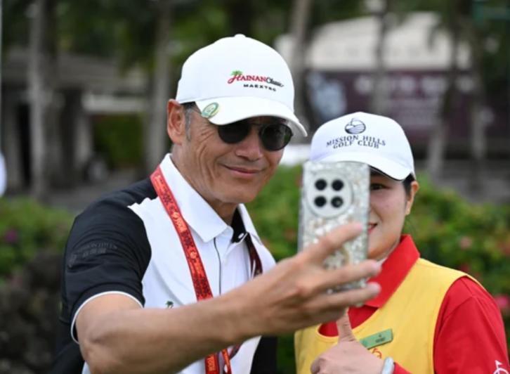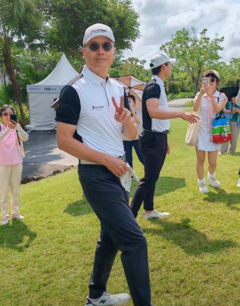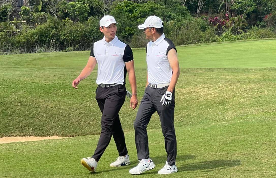 有网友在海南海口观澜湖的高尔夫球场上游玩时,恰好目睹苗侨伟带着儿子苗俊现身一场业余配对赛。父子俩一登场,便令现场网友惊艳不已。