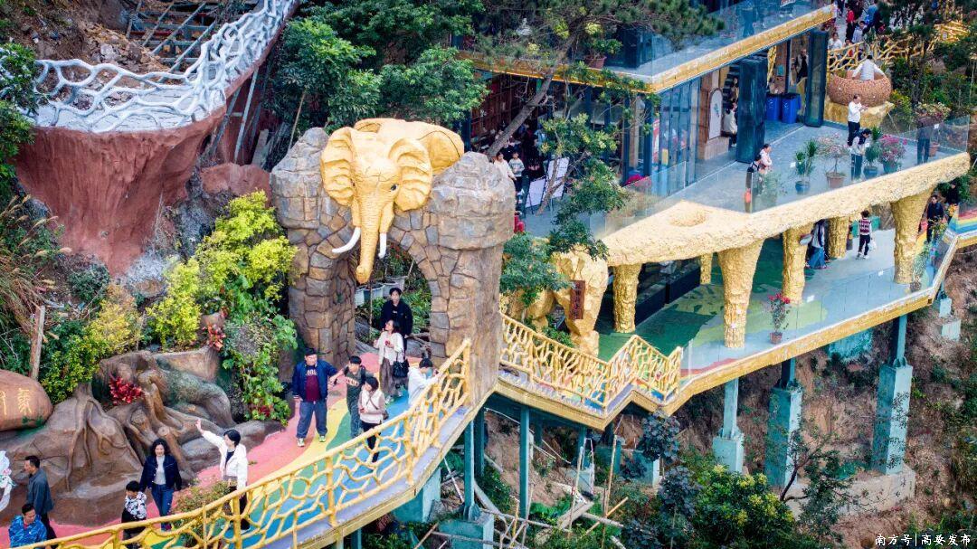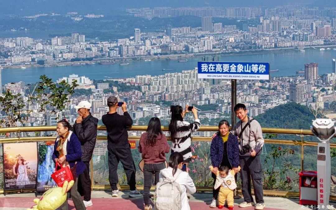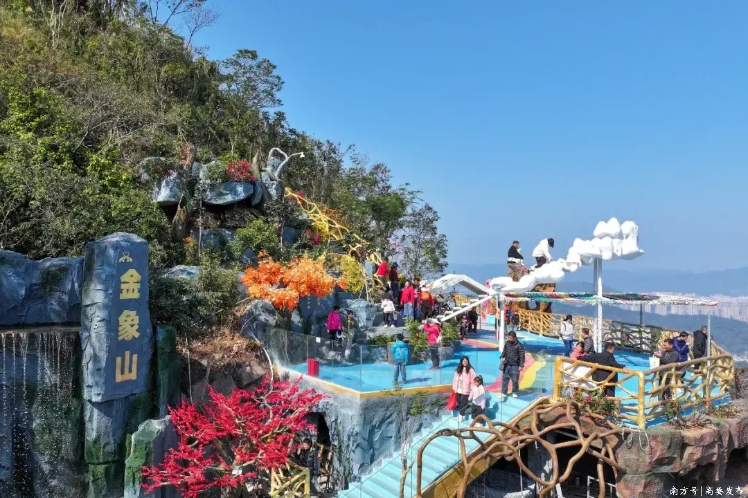 金象山森林公园作为高要区新晋的国家3A级旅游景区,凭借“生态+祈福”双重亮点成为元旦热门景区,精心打造的云顶栈道、爱心平台、天空之镜等特色景观,让游客可登高俯瞰“一江两岸”风光,在金象雕像前打卡,寄托“太平有象”的新年心愿。元旦期间,日均接待游客超2万人次。