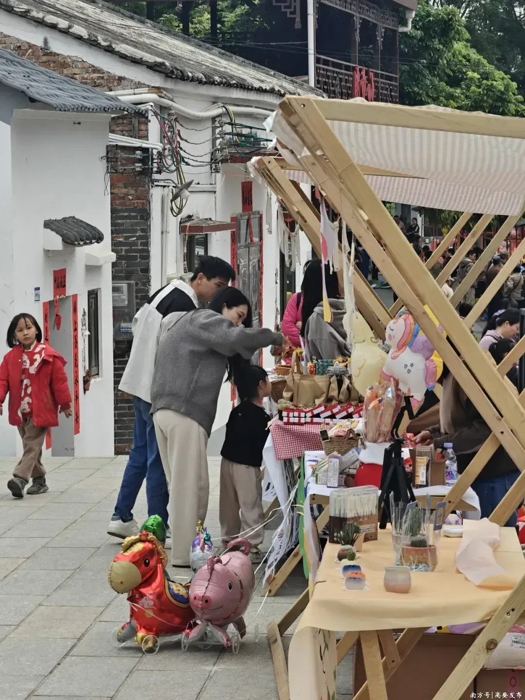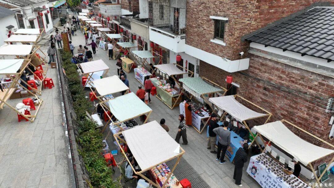 金渡镇铁岗社区以“乡村圩市+青年创业”为创新亮点,举办为期3天的“铁岗圩·青创集”。市集串联本地新鲜蔬果、传统小吃,与青年创客带来的香云纱手作、新桥洋篮、广府金绣等非遗及特色产品,搭配青年乐队表演、舞狮互动、趣味游戏,打造公益与文旅深度融合的乡村体验空间。