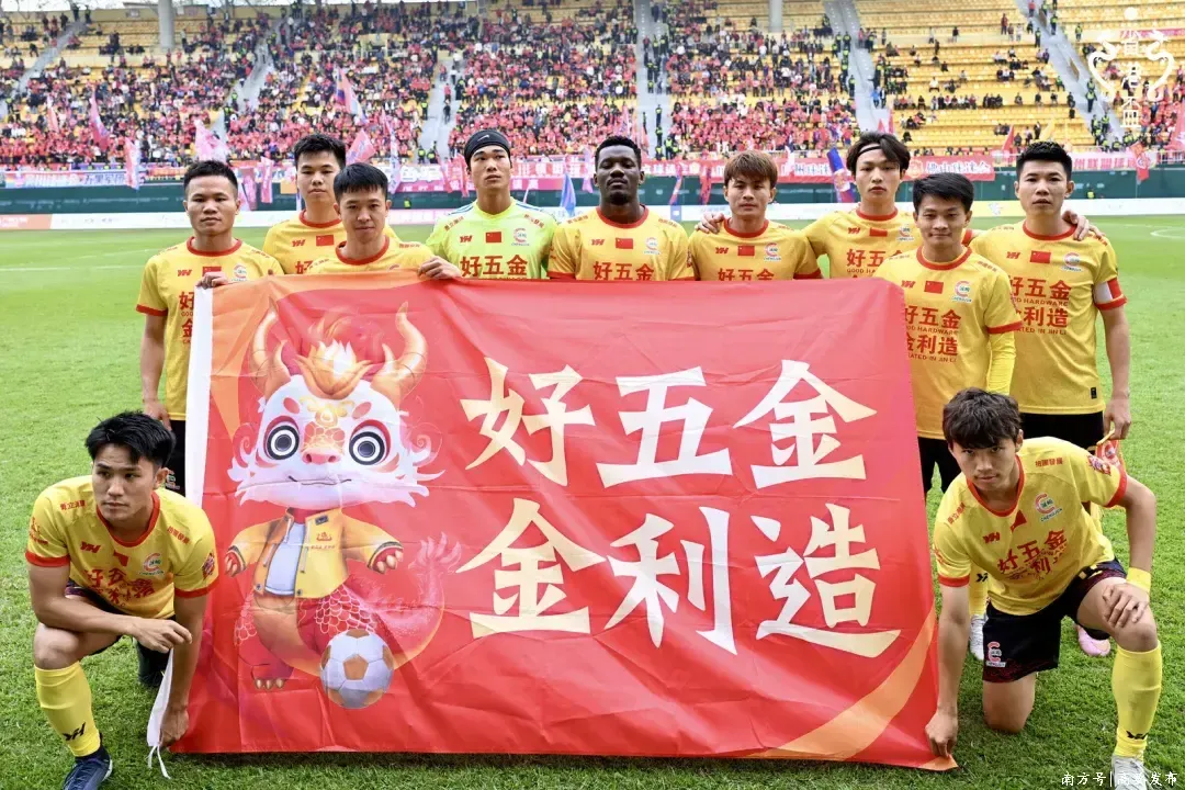 ▲ 肇庆高要金利诚峻足球队把“好五金·金利造”区域公共品牌带到省港杯超级足球邀请赛现场。金利镇供图
