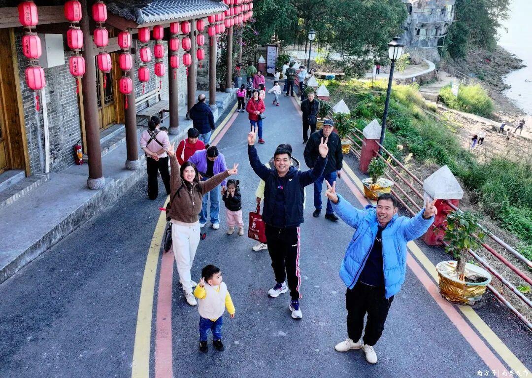 上清湾古村依托数百年历史底蕴与广府风情吸引游客,红墙黛瓦的古民居、青砖古舍、麻石小巷、渔村古渡与古榕修竹相映成趣,游客或驻足拍照留念,或静坐欣赏西江景色,沉浸式感受古今交融的独特魅力。