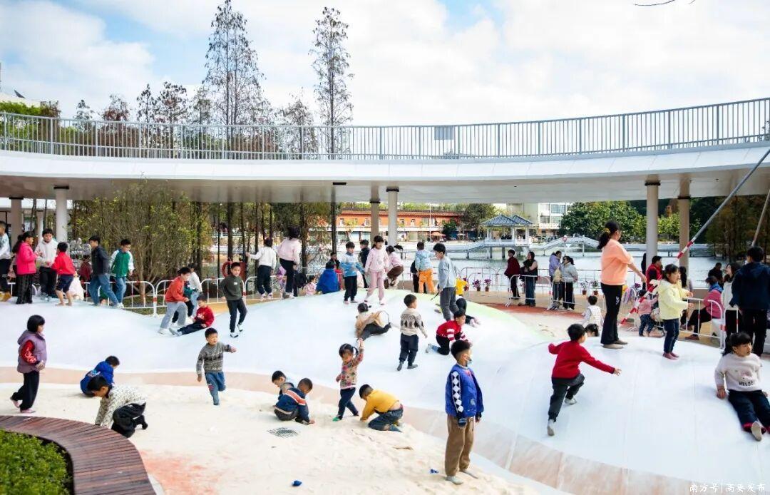 高要海·金沙滩作为老码头改造而成的“黄金海岸”,配套沙池、秋千等亲子设施,成为休闲运动与亲子游玩的热门之选。假日期间,上演了越野车特技表演赛,为元旦佳节增添了十足的激情与活力。市民林先生表示:“这里环境优美、整洁,孩子玩得尽兴,家长也能放松。”